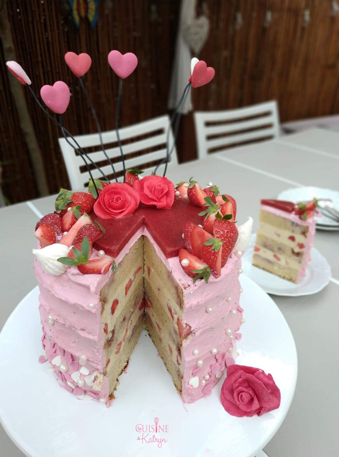 L'idée du layer cake me trottait depuis un moment et comme j'avais une folle envie de fraisier me voilà partie sur cette belle idée fruitée.