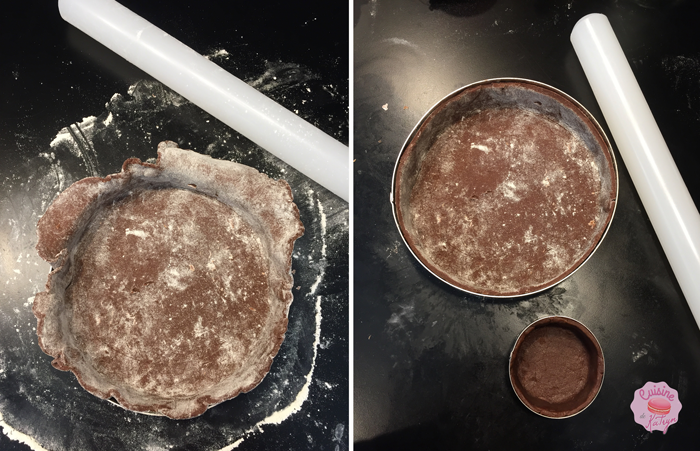 • Etalez la pâte à 3 mm d’épaisseur et chemisez le cercle de 20 cm et de 4cm de hauteur. Placez votre fond de pâte au congélateur. En attendant on va préparer le flan.