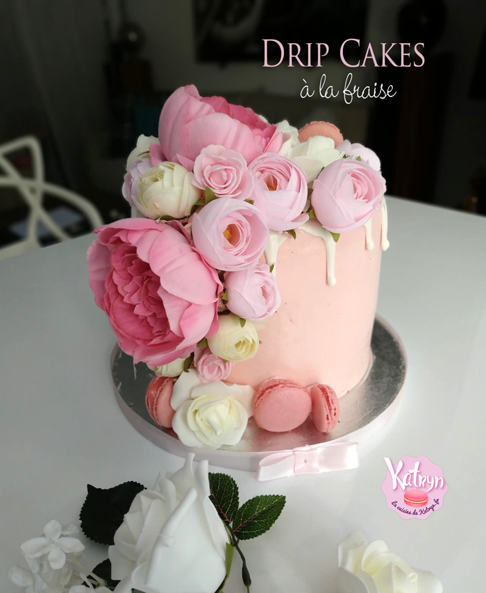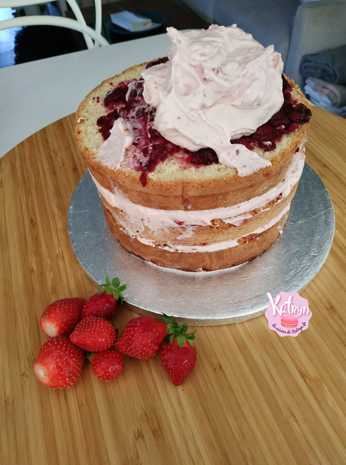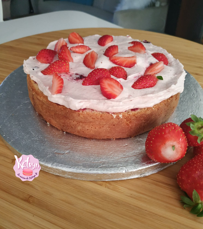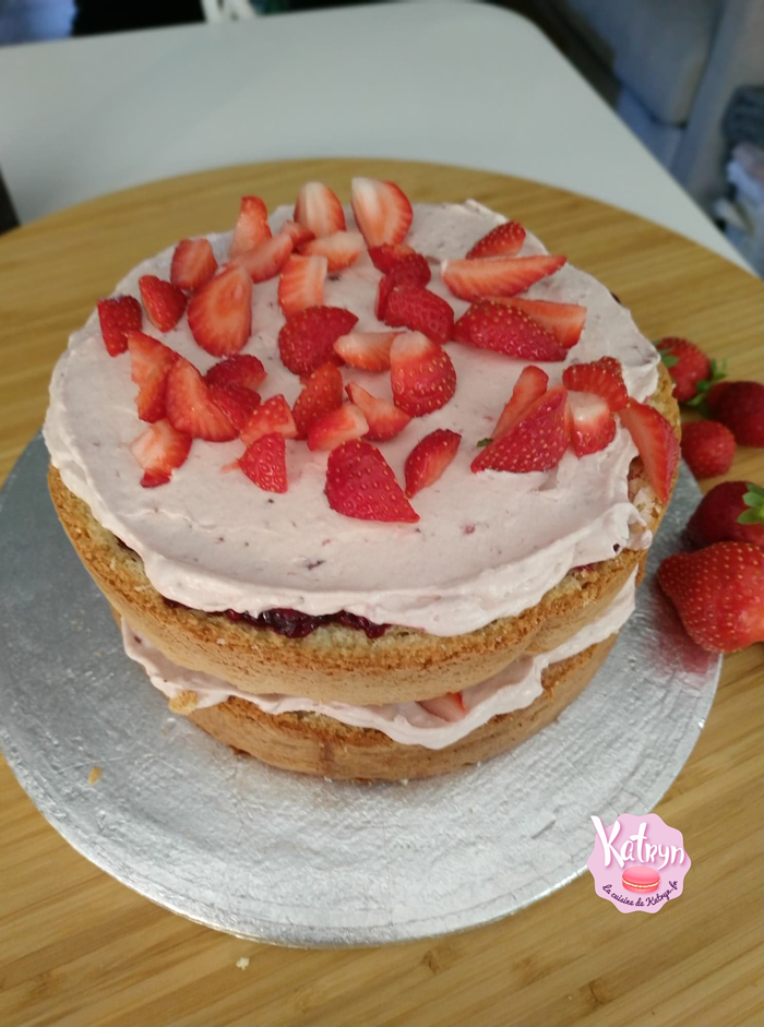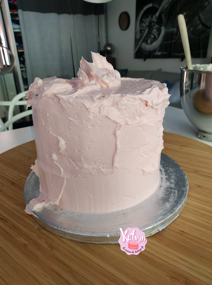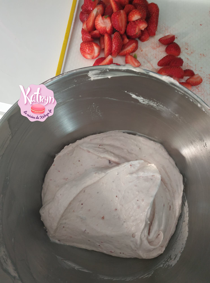 • Et Recouvert d'une crème au beurre meringue suisse à la fraise.