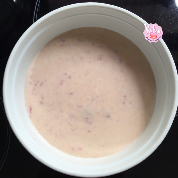 • Maintenant il ne vous reste plus qu'à mettre Arôme naturel à la fraise et le colorant à vitesse lente encore 5 minutes.