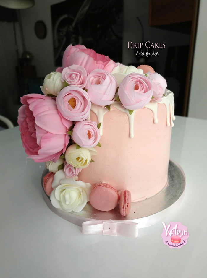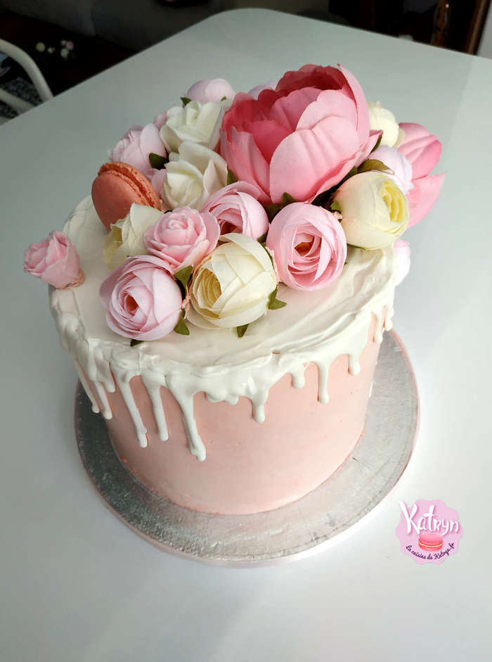 Les fleurs, je les réalise en général à la douille avec la CMBS, sauf l'été je fais attention aux crèmes que je choisis (Chez nous dans le sud de la france, les chaleurs peuvent largement dépasser les 30°C) et encore moins quand le gâteau doit voyager... Donc j'ai réalisé les petites fleurs blanches en CMBS, la grosses et les pivoines viennent de chez "fête & recevoir". Allez voir il y en a une multitude plus belles les unes que les autres.