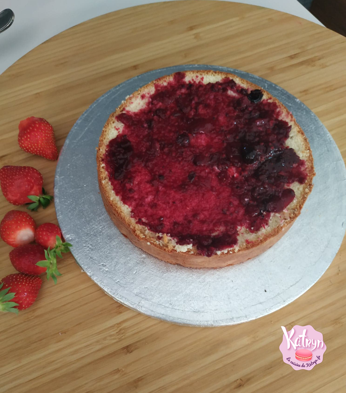 • Il est composé d'une génoise sans levure et sans pré-cuisson au bain-marie Le résultat est tout simplement impressionnant, je l'adore !! A la cuisson elle double de volume, elle est moelleuse et a une tenue parfaite pour les layer cake, quoi demander de plus !! S'il vous reste du biscuit, gardez-le pour le petit déjeuner c'est un nuage de douceur.