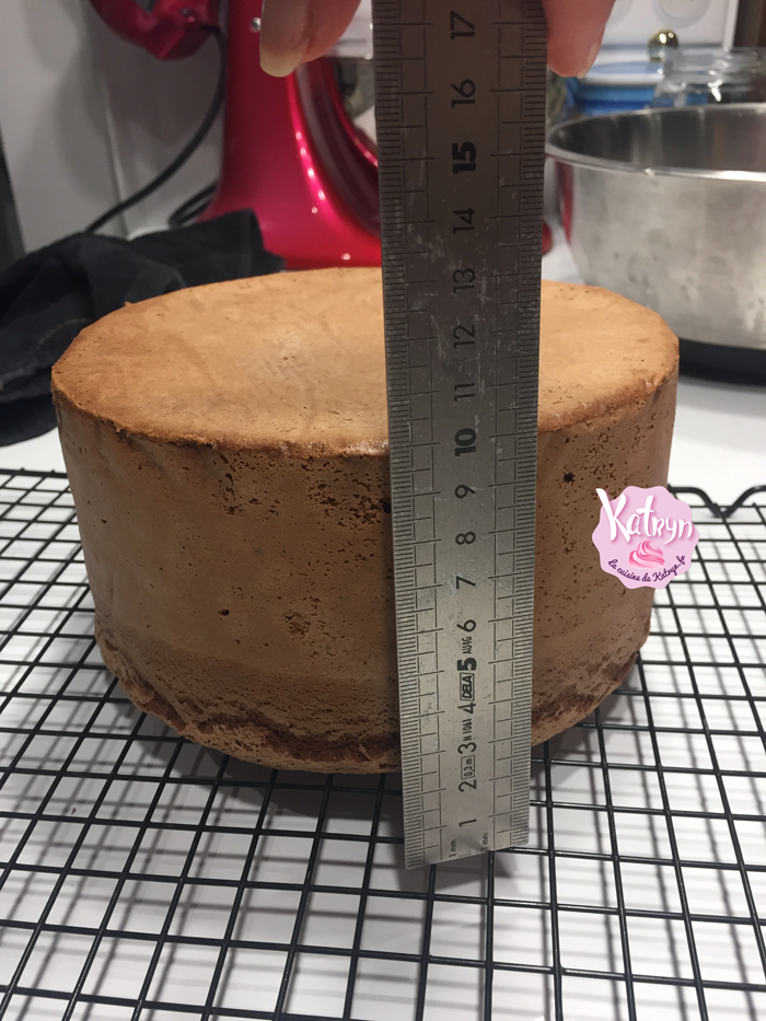 • Une fois froide, coupez la génoise comme sur la photo non contractuelle (c'est une génoise vanille).