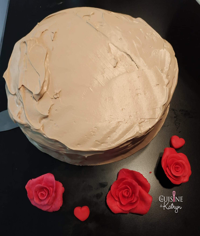 • Posez un disque de meringue que vous recouvrez de ganache, puis fermez avec le deuxième disque. Recouvrez généreusement le Merveilleux de ganache au chocolat.