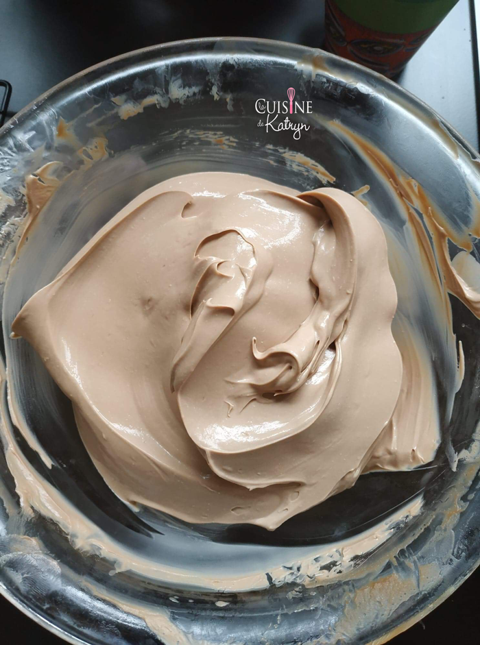 • Ajoutez la crème bien froide(2). Bien émulsionner puis Couvrir d'un film alimentaire au contact et placez au réfrigérateur 24h.