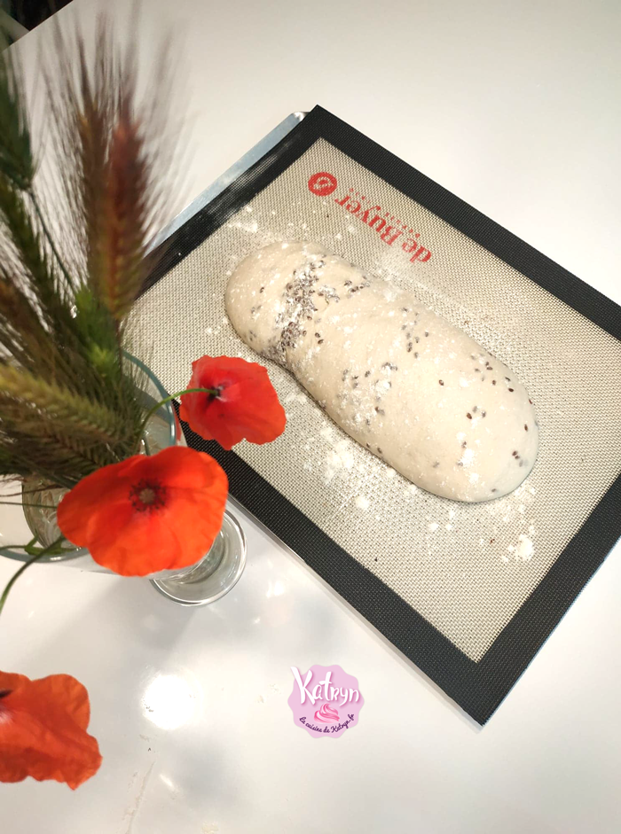 • Façonnez en boule, en baguette, ou en batard. Déposez dans une cocotte, un moule ou sur du papier cuisson. Couvrir d'un chiffon propre et laissez reposer 2 heures dans une pièce sans courant d'air. C'est parti pour un apprêt de 2h30.