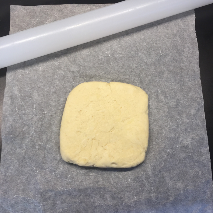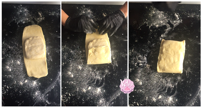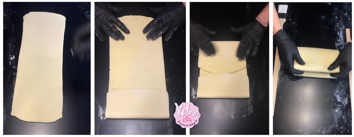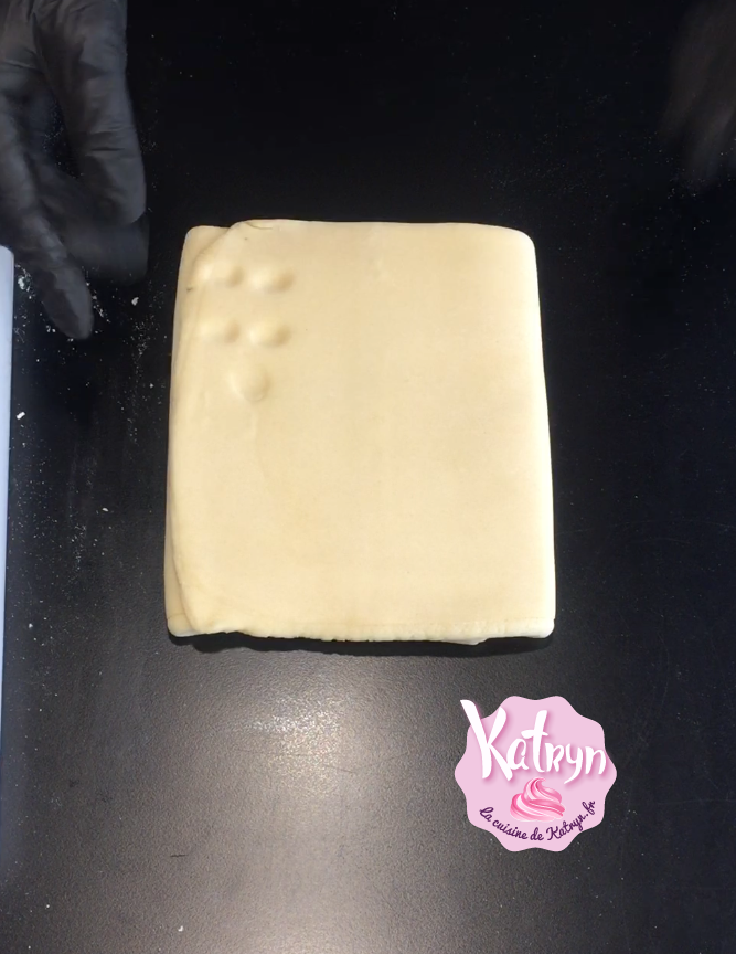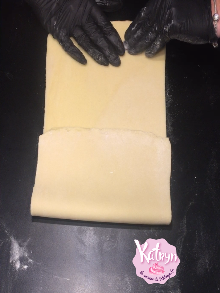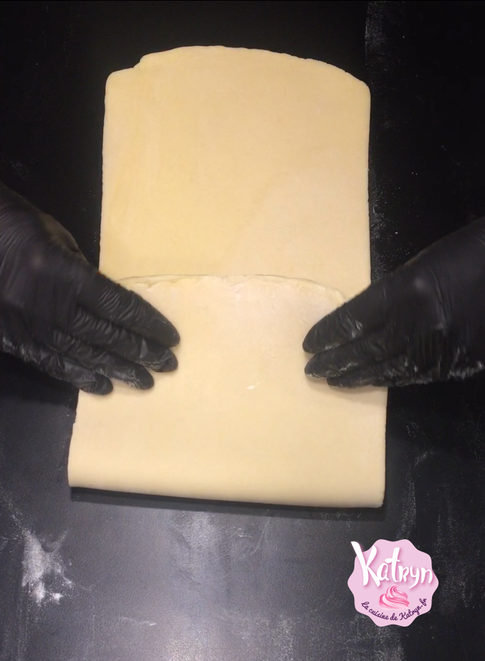 • Rabattez le premier tiers de la pâte face à vous puis le deuxième tiers par dessus comme sur la vidéo.