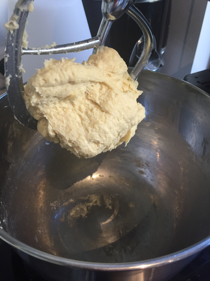 • Versez tous les ingrédients dans le bol du robot muni du crochet et pétrissez jusqu'à ce que la pâte soit amalgame, ne faites pas chauffer la pâte.